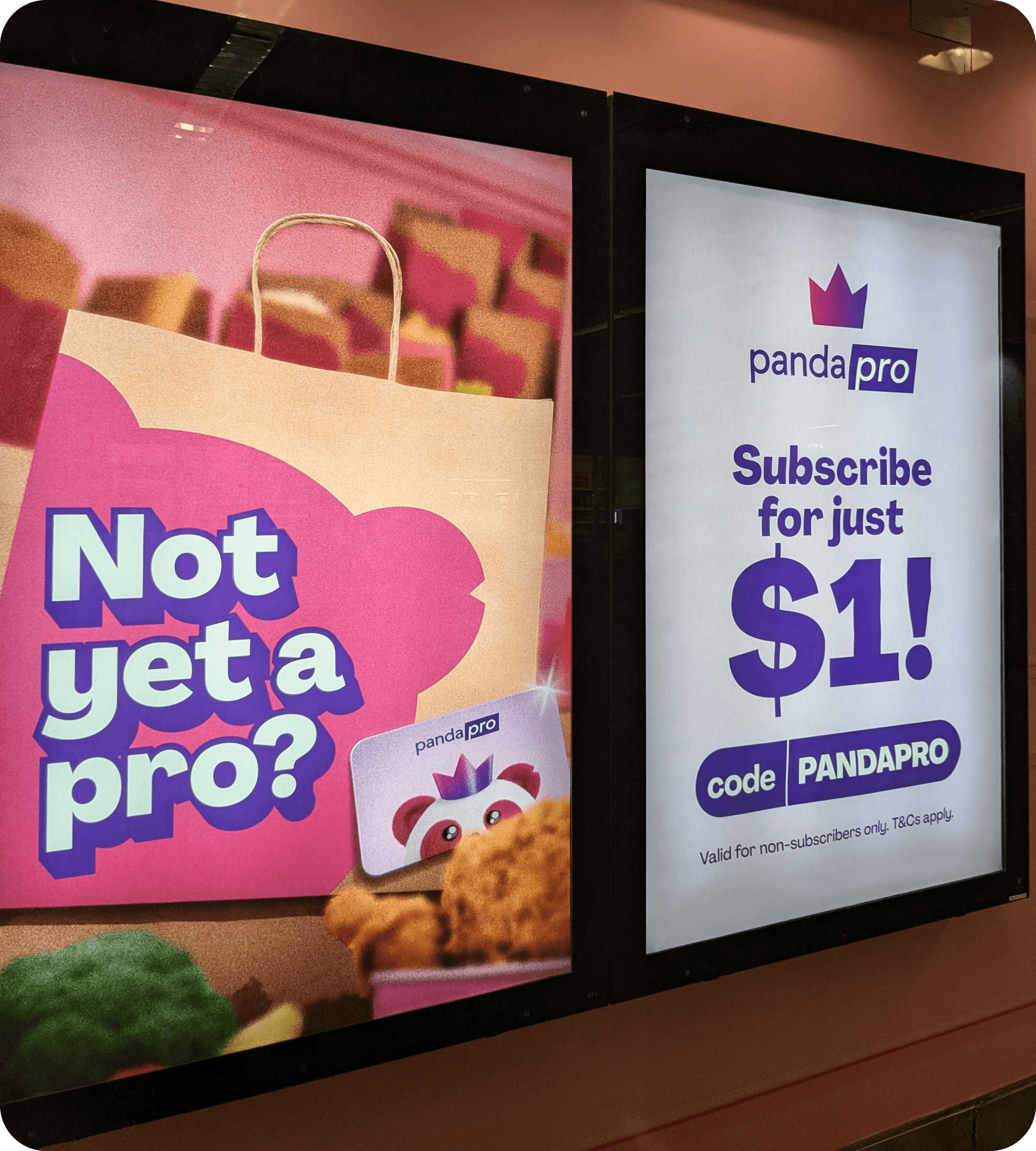 Refreshed brand colours in OOH adverts in an MRT station in Singapore.