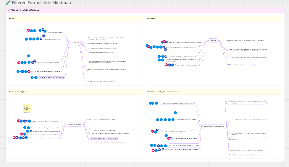 Mindmap of each design pillar, where the left starts with “A user would feel…” and it ends with “…so our design should…”.