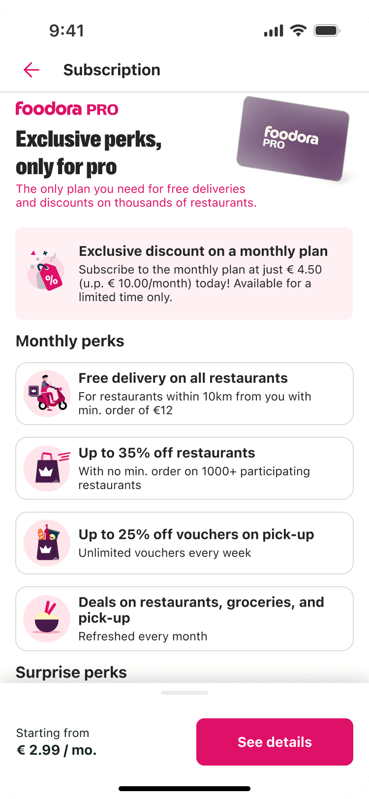 Subscriptions was launched in 2020 for foodpanda as pandapro. EU and MENA expansion came later in 2023.