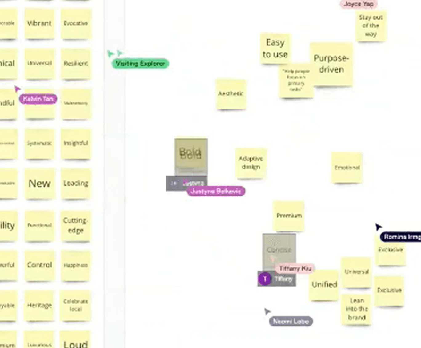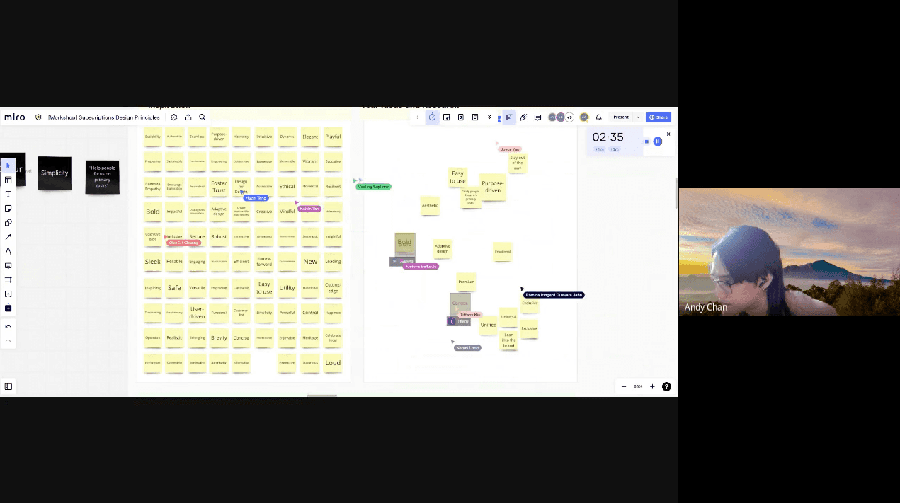 Screenshot of the first activity where I facilitated users to express what they feel should be a “design pillar” using adjectives and descriptors