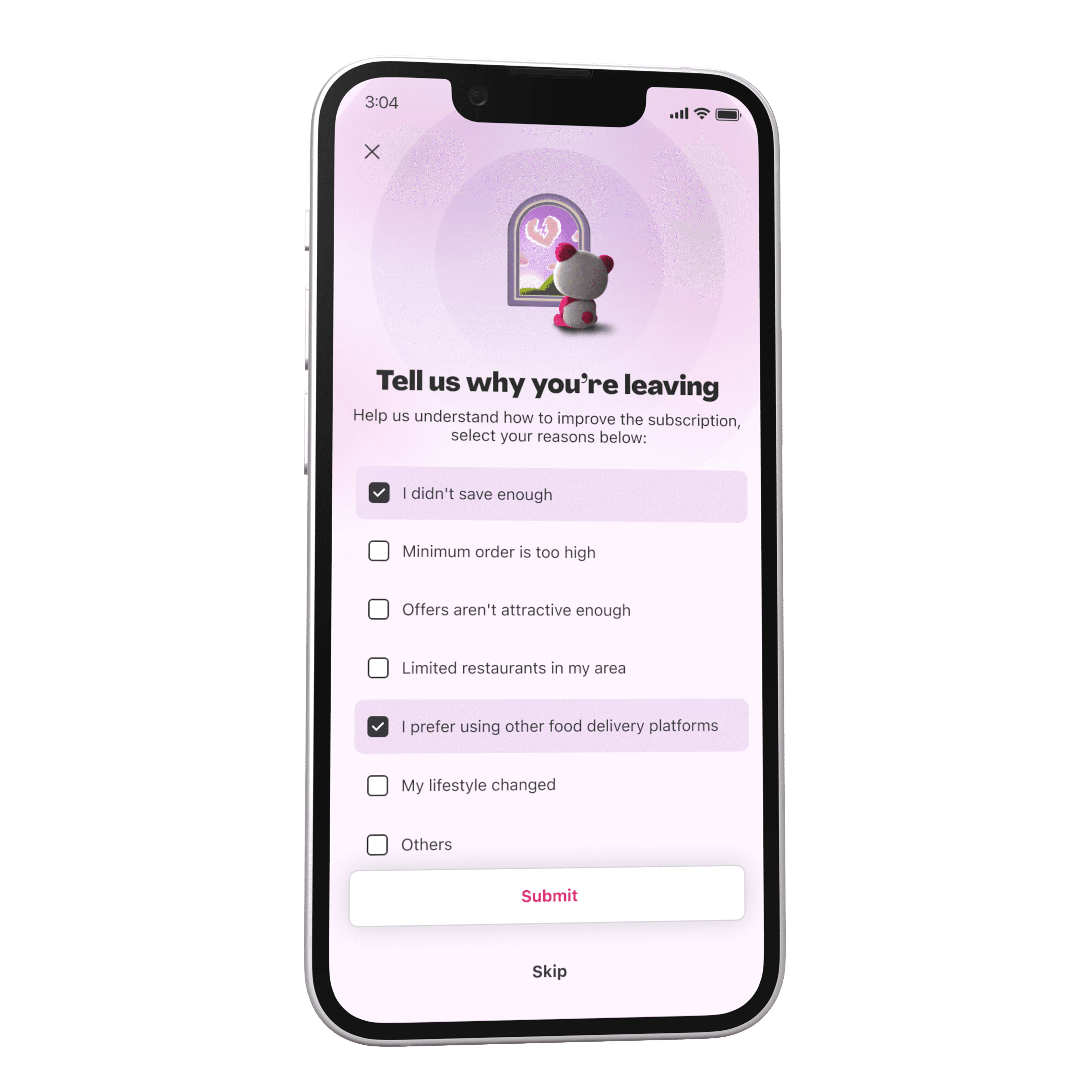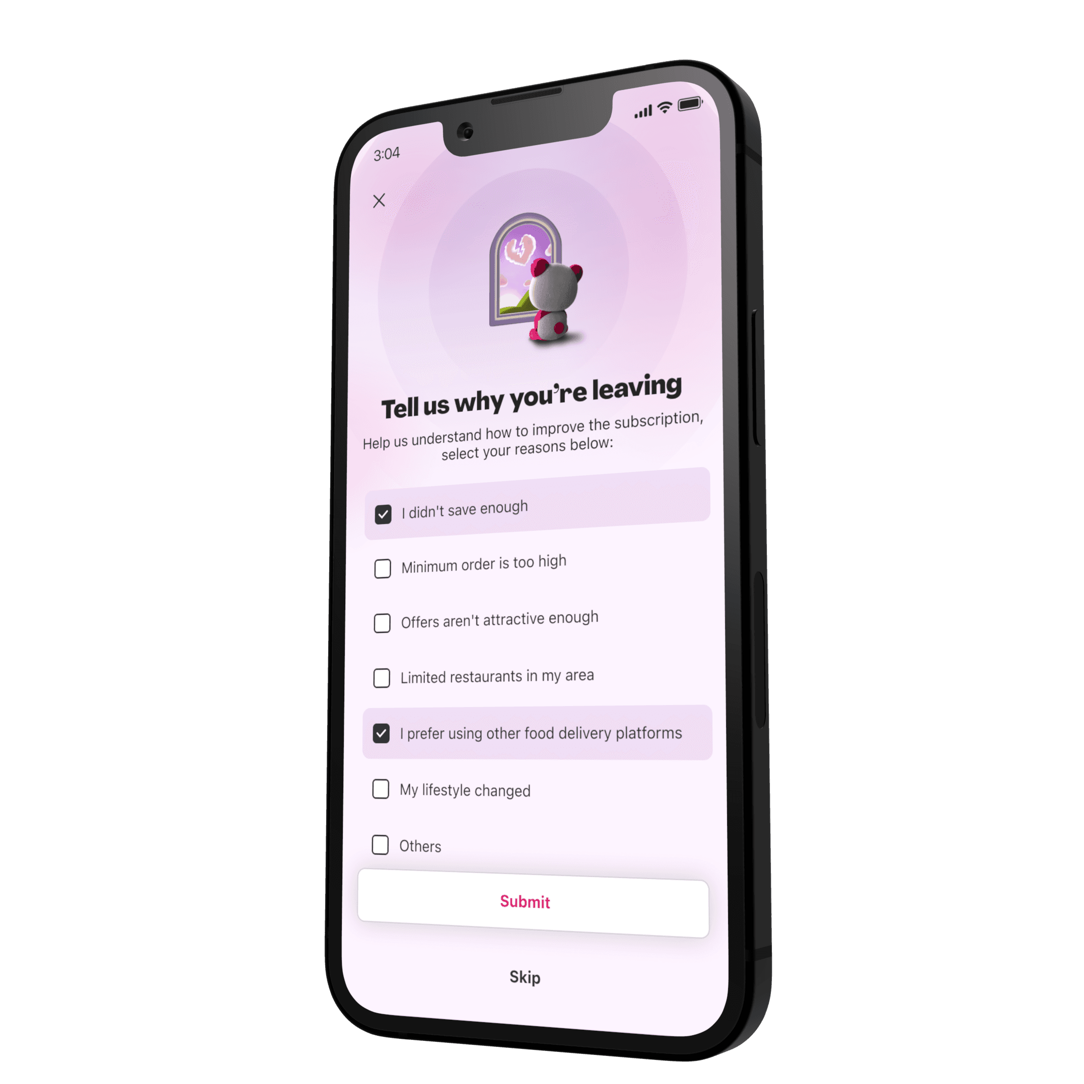 Same content, different design. Through deep user research and critique of existing experiences, I crafted an unsubscription journey that's personalised to the user's ordering behaviour.