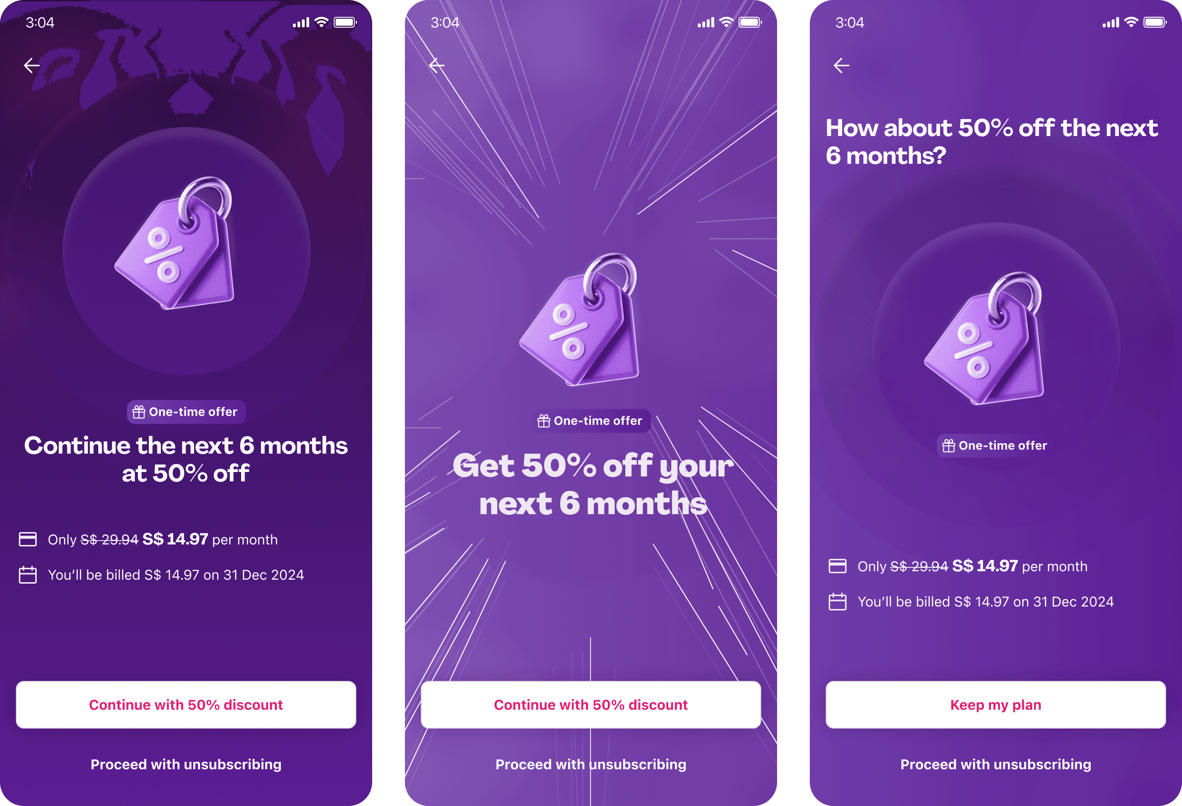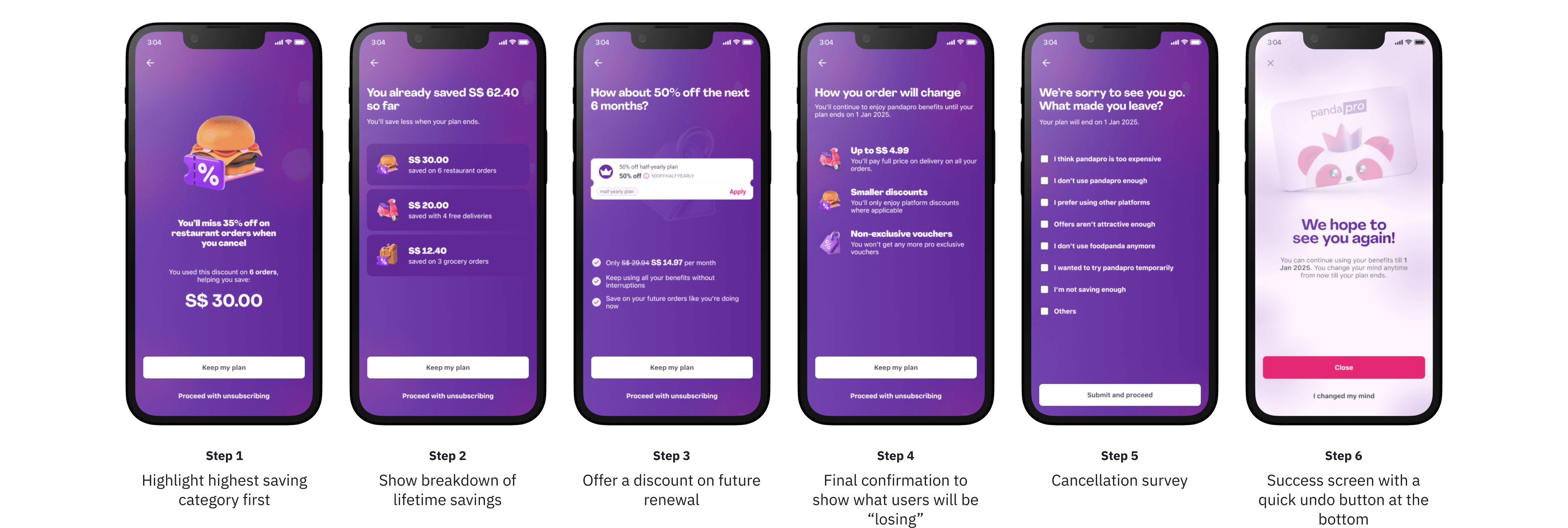 I tested a long unsubscription journey with 6 steps, each using a different psychology concept to convince the subscriber. This journey was tested with 32 users from APAC and EU.