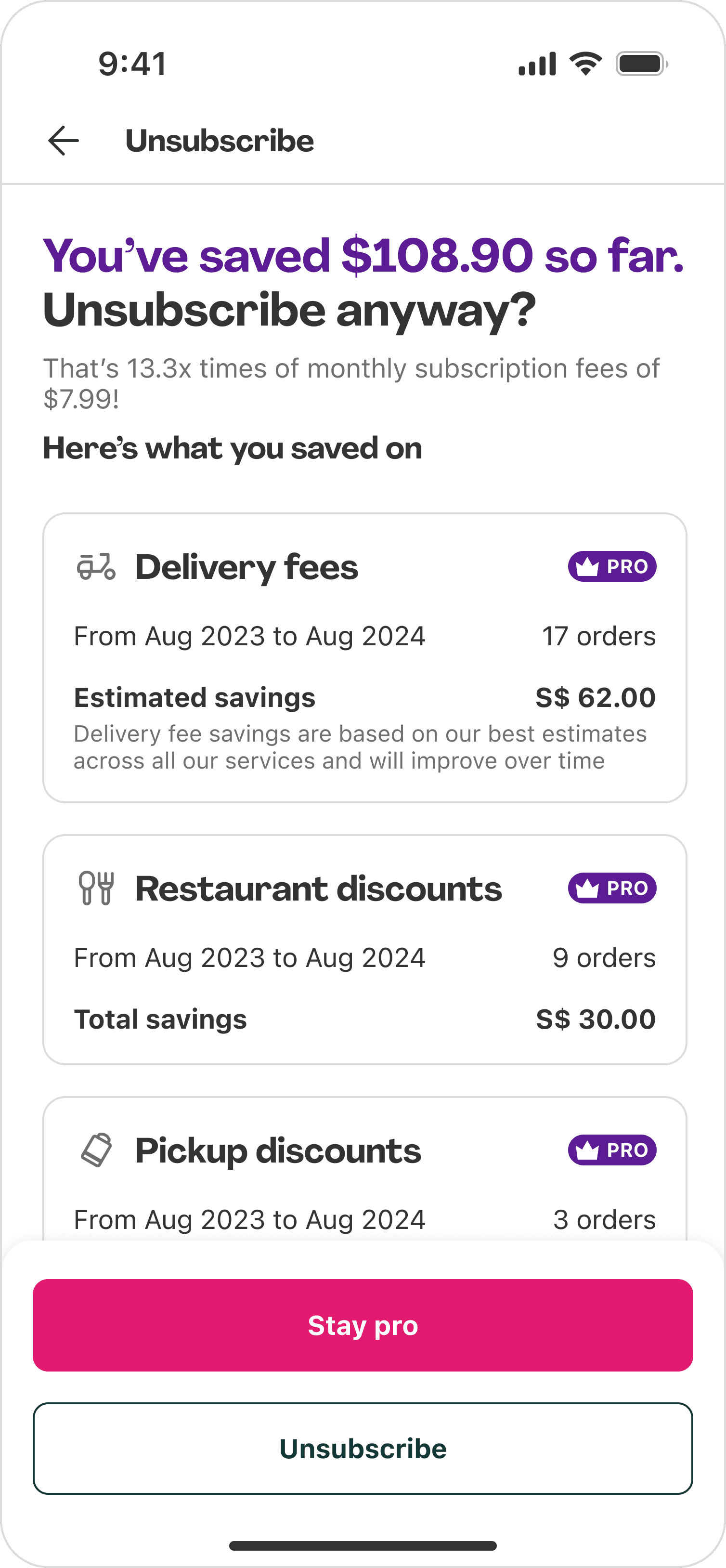 Using visuals to emphasise relevant savings content, subscribers can now see what their subscription means to them clearly and effectively. For the loyal ones, there’s an incentive to change their minds.